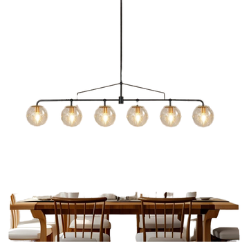 SIMIG Modern Linear Chandelier 6-Light Farmhouse Kitchen Bar Pendant Black Gold Dining Room Light Fixture Glass Globe Shade