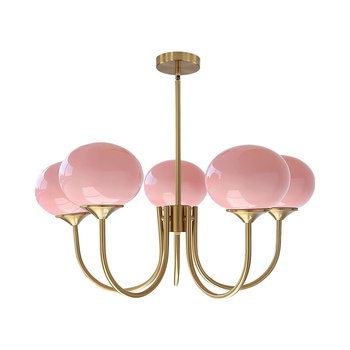 SIMIG 5-Light Gold Globe Sputnik Chandelier Modern Pink Glass Pendant for Kitchen Mid Century Vintage Brushed Brass Ball Fixture