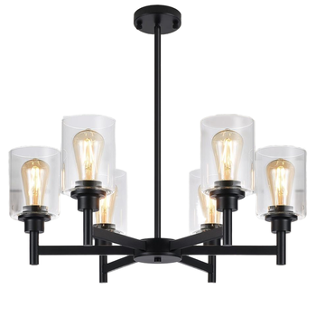 SIMIG Black Dining Room Chandelier Clear Glass Shade Farmhouse Pendant Lights Height Adjustable for Kitchen Island Living Room