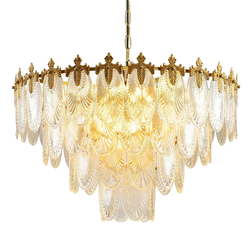 SIMIG 12-Light Antique Ceiling Pendant 4-Layer Gold Glass 31.5 Inch Adjustable Large Crystal Chandelier for Foyer Living Room
