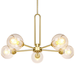 SIMIG 5-Light Gold Modern Sputnik Anhänger Kronleuchter Große Semi-Flush Decken leuchte Klarglas für Esszimmer