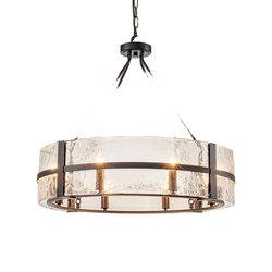 SIMIG Modern 6-Light Black Glass Drum Chandelier Farmhouse Style Dining Room Pendant Light Fixture for Kitchen Island Living