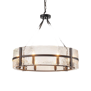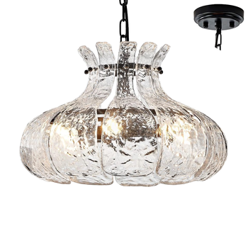 SIMIG Luxury 6-Light Black Glass Chandelier Water Ripple Pendant Lighting Fixture for Dining Room Kitchen Hanging Light